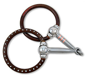 One of the most versatile bits available, this Correction bit has the added feature of ball bearing bars. Aproactive bit that shows its value when you have to “bump” one off the bit. The hand engraved Aluminum cheeks are lightweight and elegant.Features: 8”, hand engravedAluminum Cavalry shanks. 5”, Correction mouth with inlaid copper bars. |