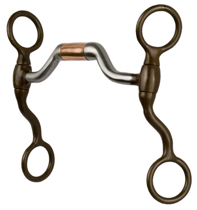 The 7/16” or 3/8” mouth is gentle and extremely versatile. It has a varietyof applications in the training pen,from a transition bit to a headsetterwhen used with draw reins. It is just as versatile in the show penwhether showing reiners or pleasure horses. The cold steelmouthpiece will rust creating apleasant “sweet” taste.